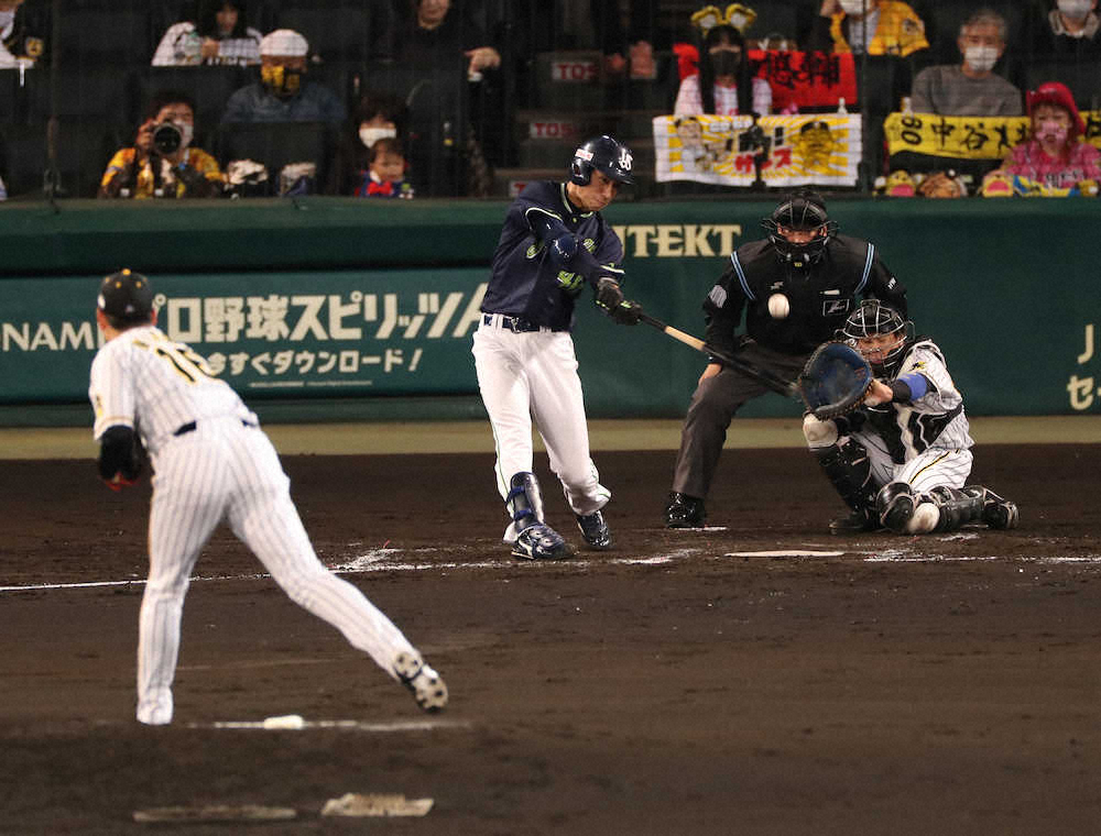 プロ初勝利を懸けてプロ2度目の先発マウンドに上がった金久保。4―1で迎えた2回の第1打席。阪神先発の西勇が0―1から投じた2球目をセンターへ弾き返して、プロ初勝利の前にプロ初安打を記録した。