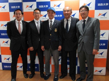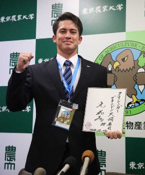 DeNA育成ドラ1、法大・石川に指名あいさつ「千賀投手のようになりたい」