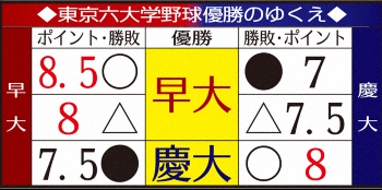 早慶戦の勝者が優勝 早大は引き分けでもV