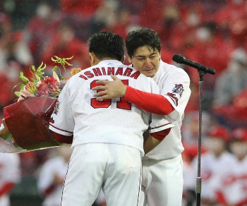 引退の広島・石原慶 黒田&新井氏のサプライズ登場でビックリ かけられた言葉は「企業秘密」