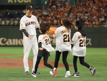 引退セレモニーで花束を手に駆け寄る子どもたちに笑顔を見せる岩隈 Photo by 代表撮影 巨人・岩隈 万感の引退セレモニー 家族とグラウンドを一周「最高の野球… ギャラリーで見る この記事のフォト 2020年11月08日の画像一覧 もっと見る 2020年11月08日の画像をもっと見る