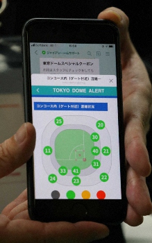 星春海総務本部長は「新しい技術を使ってお客さまに安心した観戦を提供し、来シーズン、来年の東京五輪につなげていく」と説明。場内カメラの映像から人の流れを可視化。二酸化炭素濃度の計測や近距離無線通信「ブルートゥース」の電波を、場内約100カ所に設置した受信機を利用して混雑状況を正確に数値化した。