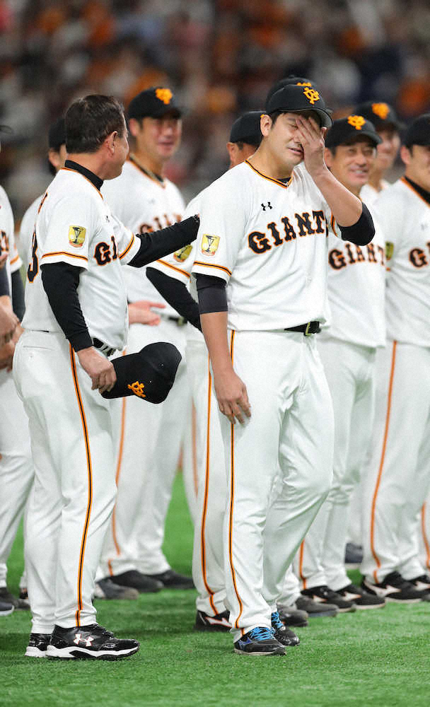 原監督(中央右)のスピーチの途中で急に話すことになった菅野(同左)撮影・木村 揚輔) Photo by スポニチ 巨人 本拠地最終戦セレモニーで原監督が菅野に“むちゃぶり” ギャラリーで見る この記事のフォト 2020年11月09日の画像一覧 もっと見る 2020年11月09日の画像をもっと見る