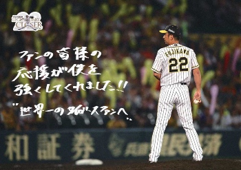 《来場者にはポスター配布》阪神は10日の巨人戦の来場者全員(1人1枚ずつ)に配布する「藤川球児選手 メモリアルポスター」を発表した。あわせて当日に予定する引退セレモニーで藤川の登場時に「光の演出」を実施することも発表した。球団公式アプリ内で引退セレモニー限定として「タップ de イルミネーション」の選択が可能になり、藤川が登場した際に起動すれば、スマートフォンの画面がカラフルに変化する。球場外で観戦していても、アプリを使ってリモート参加することができる。