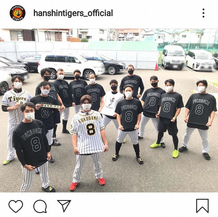 球団公式のインスタグラムがその写真をアップ。藤浪や近本、ガンケルやサンズなどが背番号8入りのTシャツを着用し、梅野、中谷は福留のユニホームを着てポージングした。投稿のハッシュタグには「#ありがとうございます」「#感謝」と添えられた。