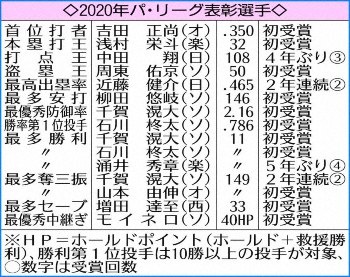 ▼オリックス吉田正(首位打者で自身初タイトル)リスペクトする選手たちと高いレベルで争った初めてのタイトルをうれしく思う。さらなる高みを目指し、勝利に貢献する打撃ができるように頑張ります。