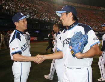 私が指揮官だった2年間とも、開幕投手は大輔に任せた。2月1日、キャンプ初日の朝に彼のホテルの部屋に行って通達した。「頼むぞ」「はい」。短い言葉でも以心伝心で思いは伝わる。元々多くを語るタイプではないが、曲がったことが嫌いな熱く、真っすぐな男。私が「投げてほしい」などと言わなくても05年が10、06年が9完投。リリーフ陣を休ませられるし、本当に助けられた。