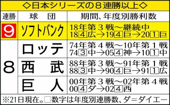 ソフトバンク ポストシーズン最多13連勝 日本シリーズ新9連勝