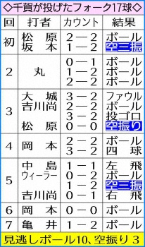 巨人は3回の攻撃の前に円陣を組んだ。低めを捨てることを徹底したのだろう。直後のウィーラーに8球、大城には12球粘られた。4回には先頭・坂本に四球。岡本にはカウント2―2からフォークを2球見逃されて四球を与え、無死一、二塁とされた。ここが勝負の分水嶺。千賀も一番苦しい場面だったろうが、ここでもう一本の刀を抜く。