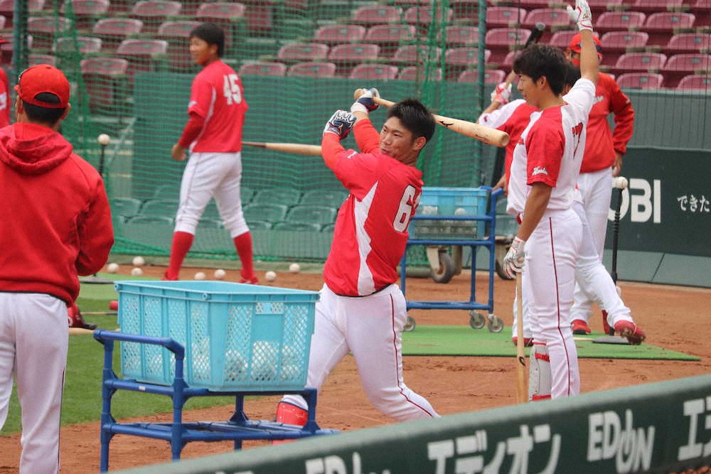 来季から今季限りで引退する石原慶の背番号31を引き継ぐ。「驚きとうれしさと不安と。やるしかない。今年試合に出る中で、(石原慶から)いろんな声を掛けてもらいましたし、アドバイスも頂いた。今後絶対に僕の中で生きてくることだと思う」。今季は2番手捕手。将来の正捕手候補として球団から「31番」を提示された中、来季から会沢との正妻争いに挑む覚悟だ。