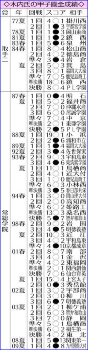 ◆木内 幸男(きうち・ゆきお)1931年(昭6)7月12日生まれ、茨城県土浦市出身。土浦一で外野手として活躍し、卒業後も指導を続け53年に監督就任。57年に取手二へ。84年夏に初の全国制覇。同年秋に常総学院の監督に就任し、01年センバツで優勝。03年夏の日本一を花道に一度勇退したが、07年に復帰。11年夏を最後に現場を退いた。甲子園に春7度、夏15度出場し通算40勝は歴代7位。