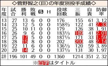 巨人が菅野智之投手(31)の今オフのポスティングシステムでのメジャー移籍を容認することが25日、分かった。猛威を振るう新型コロナウイルスの影響で来季、メジャーが正常開催できるかは不透明な状況だが、菅野自身の希望を尊重する可能性が高い
