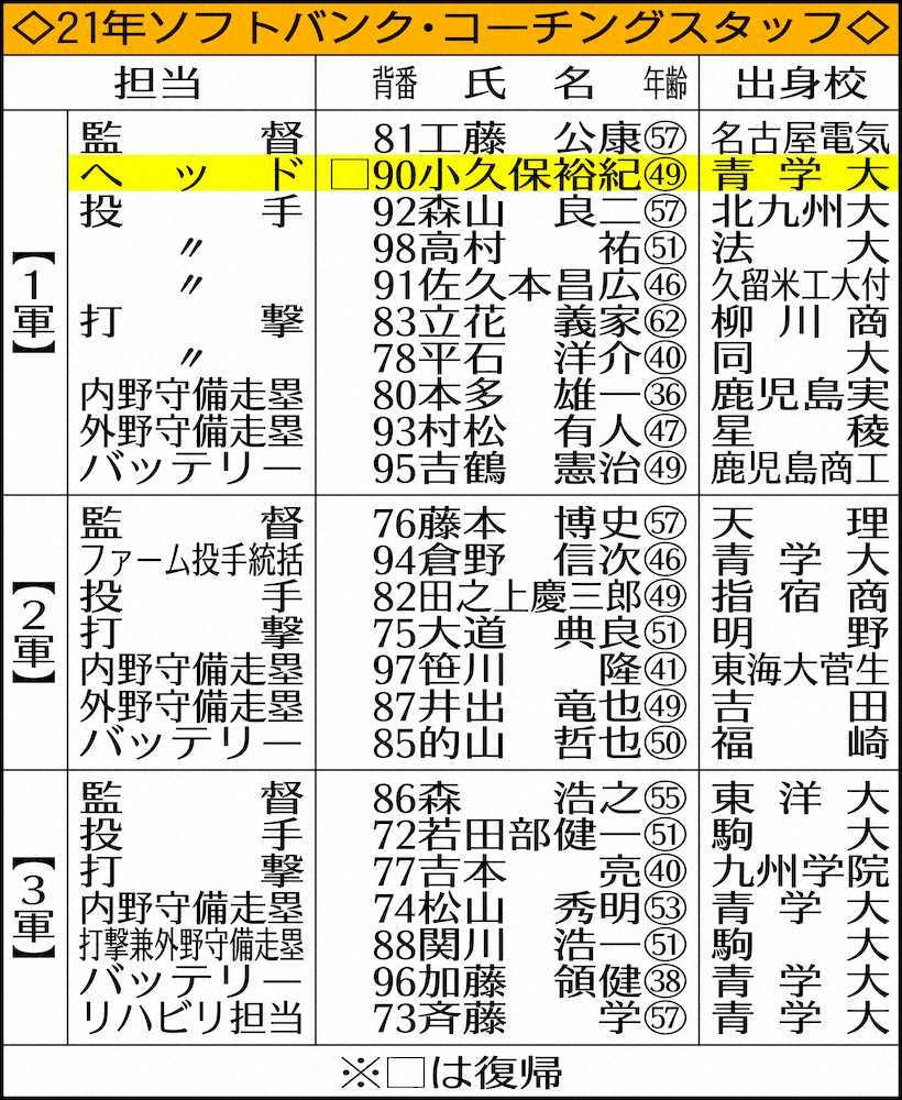 3軍監督に配置転換となったソフトバンク・森ヘッドコーチ Photo by スポニチ ソフトB来季首脳陣発表 小久保ヘッド就任で森ヘッドは3軍監督に配置転換 ギャラリーで見る この記事のフォト 2020年12月04日の画像一覧 もっと見る 2020年12月04日の画像をもっと見る