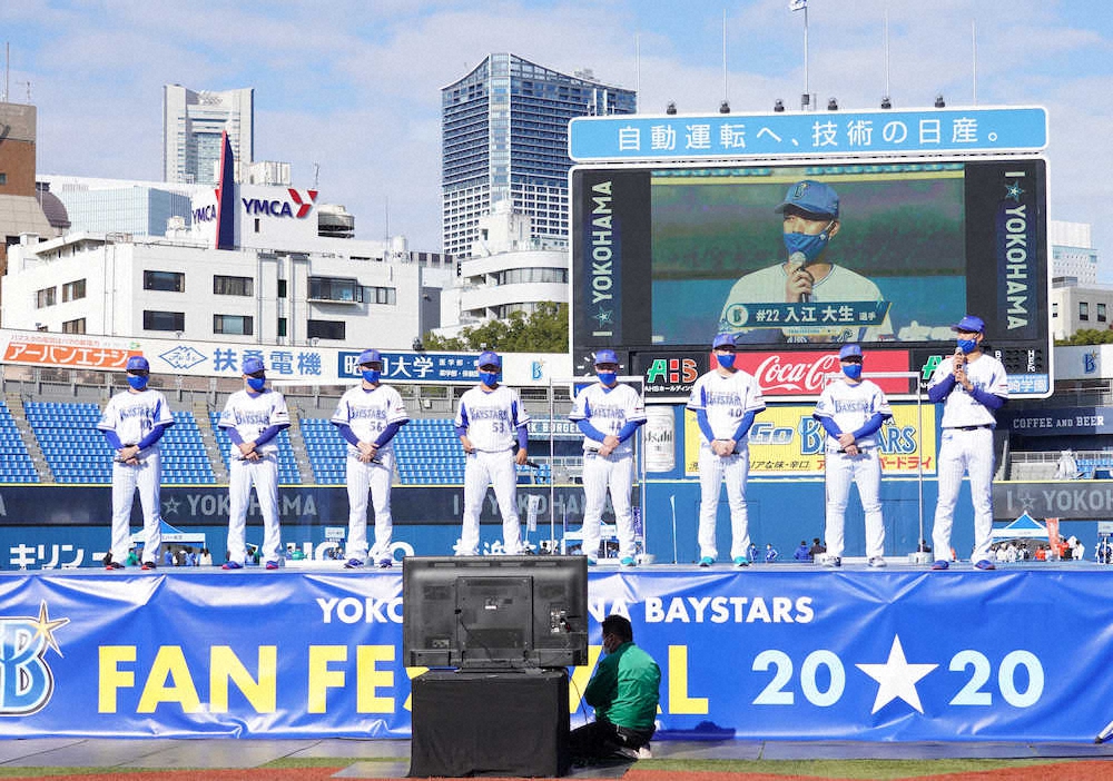 DeNAドラフト1位の入江(明大)ら新入団8選手がお披露目された。背番号「22」のユニホームを着て初めて本拠地のグラウンドに立った最速153キロ右腕は「アピールポイントは打者を抑えてやるという強い気持ちです。応援される選手になれるように頑張ります」と力強くあいさつ。