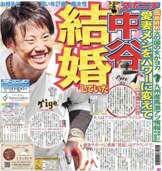 阪神・中谷結婚していた!お相手は料理上手の27歳一般女性「1軍で活躍して支えていけるように」