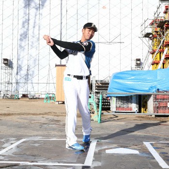 《球友の歌をテーマ曲に》古川は球場建設地の左打席と、本塁の後方を確かめた。23年には毎試合のように守り、打つ仕事場。「正捕手としてプレーしている姿、ホームランを打つ姿を思い浮かべた」と口にした。1年目から打席に登場するテーマ曲はイメージできている。「中学の野球チームが一緒だった友達で、まだ有名ではないけど、巧龍一という歌手がいる。歌っている歌にしようと思う」。3年後にはきっと、友人と一緒に「大ヒット」を奏でている。