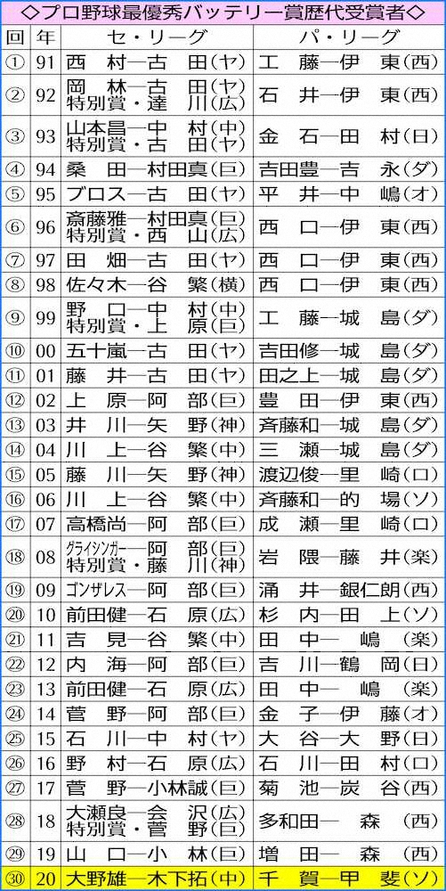 2020年度バッテリー賞受賞者 Photo by スポニチ 中日・木下拓 正捕手確立、そして最高峰舞台での「タクヤ対決」待望 ギャラリーで見る この記事のフォト 2020年12月17日の画像一覧 もっと見る 2020年12月17日の画像をもっと見る