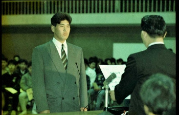 88年11月24日、ドラフト会議で1位指名を受け、晴れて阪神の選手となった。当日も夕方には電車で登校した。12月15日の新人選手入団発表の夜は期末試験だった。
