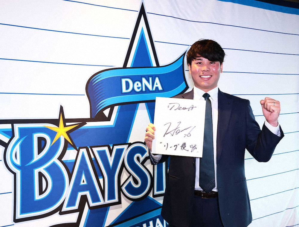 契約更改を終え、来季の目標に「リーグ優勝」を記したDeNA・浜口