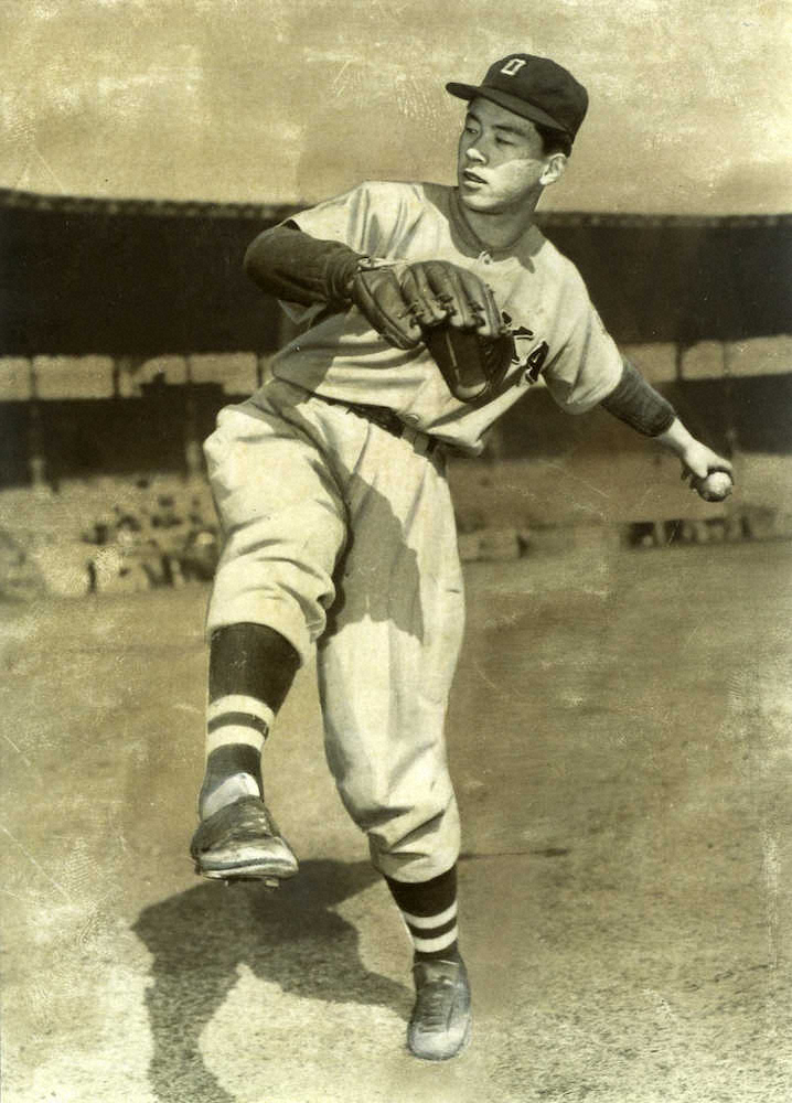 投球フォームがそっくりな「伝説の左腕」海草中・嶋清一(右)と新宮高・前岡勤也