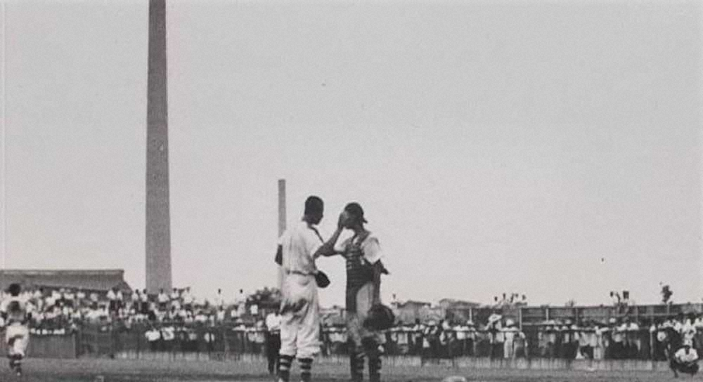 新宮高の前岡-長嶋バッテリー(1954年7月30日、和歌山県営向ノ芝球場)=DVD『栄光は永久に』(新宮高校硬式野球部OB会有志)より=