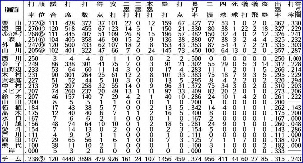 今季・パ・リーグの先発4番打者成績 Photo by スポニチ 西武 球団ワースト“主砲不振”に泣いた 先発4番5人トータルで・204 ギャラリーで見る この記事のフォト 2020年12月19日の画像一覧 もっと見る 2020年12月19日の画像をもっと見る