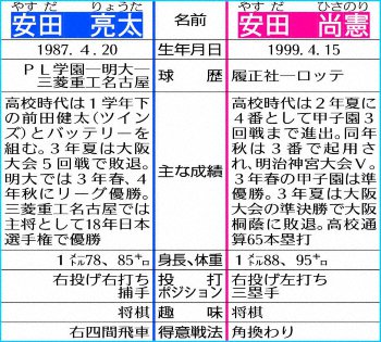 プロとアマの垣根を越え、「3球勝負」の兄弟対談が実現!ロッテで今季87試合で4番を打った3年目の安田尚憲内野手(21)が、18年の日本選手権で三菱重工名古屋を日本一に導き、来季から再編・統合された三菱重工Eastに所属する兄・亮太捕手(33)からオンラインでインタビューを受けた。捕手らしい独特な目線からの質問に加え、12歳上の実兄だからこそ知る極秘エピソードも――。遠慮なしの「爆笑トーク」となった。(構成=横市 勇、柳内 遼平)