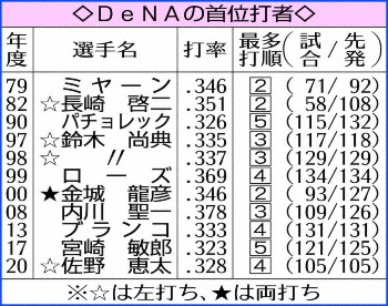 DeNA投手成績 Photo by スポニチ DeNA 球団初の打率&本塁打1位!佐野、4番で100戦以上の首位打者は球団史… ギャラリーで見る この記事のフォト 2020年12月22日の画像一覧 もっと見る 2020年12月22日の画像をもっと見る