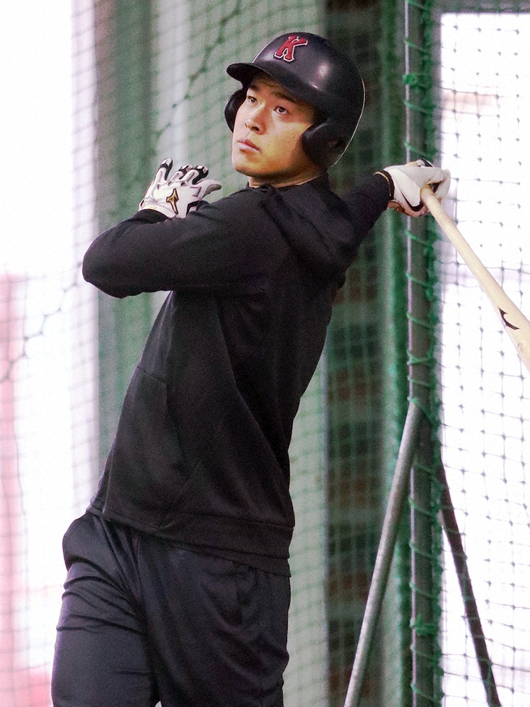 仁川学院3年生の6月に練習参加し、ワンスイングで近大・田中秀昌監督をほれさせた。その場所が、この日もバットを振った室内練習場だった。「監督は僕を見つけていただいて、ずっと1年から使ってくれたのですごく感謝しています。(教えで大事にしているのは)野球人、人としてそれ(野球)以外のことをしっかりしろと。私生活面でこれからもしっかり成長できるようにやっていきたい」