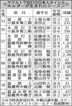 ヤクルトで投打の日本人タイトルホルダーが生まれたシーズン Photo by スポニチ ヤクルト・清水&村上 球団65年ぶり24歳以下が投打タイトル ギャラリーで見る この記事のフォト 2020年12月26日の画像一覧 もっと見る 2020年12月26日の画像をもっと見る