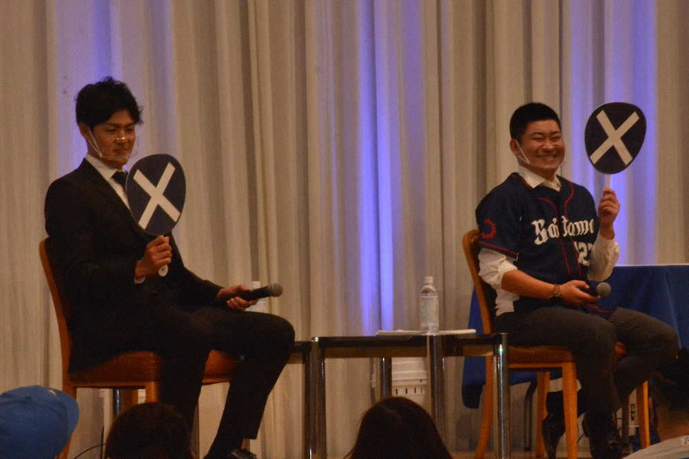 西武の木村文紀外野手(32)と今季限りで現役を引退した高橋朋己投手(32)が29日、埼玉県川越市内の川越プリンスホテルでランチ&トークショーを開催。約200人のファンが詰めかけた。2人でオフにトークショーを行うのは3度目で、「名コンビ」からは極秘エピソードが連発した。