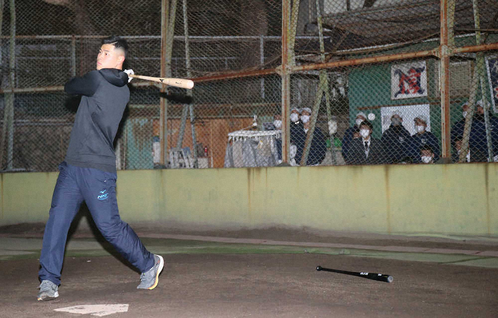 阪神ドラフト1位の佐藤輝明内野手(21=近大)が4日、兵庫県西宮市の仁川学院グラウンドで自主トレを公開。高校時代の同級生らとともに約2時間、キャッチボールやティー打撃などで汗を流した。
