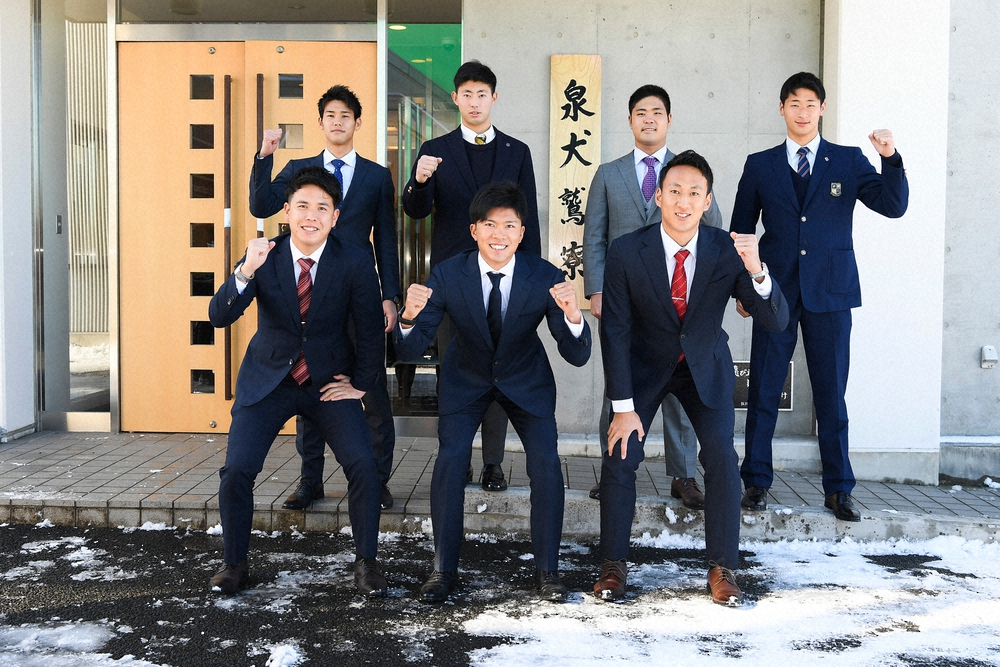 吐く息は白く、肌を刺すような寒さに出迎えられた。寮の玄関前で全員が揃って記念撮影。外気に触れた時間は長くなかったものの、早川は「雪を見て、仙台にきたんだなと感じた。東京の寒さは我慢できるけど、仙台の寒さにはまだ適応していない。想像以上でした」と苦笑いを浮かべた。