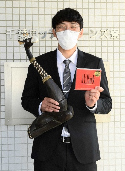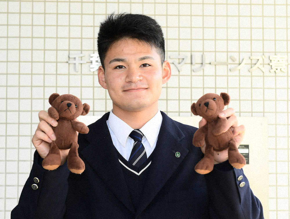 ロッテ・ドラフト2位の中森(明石商)はクマのぬいぐるみを2つ、同4位の河村(星槎道都大)はキリンの置物を持参し、さいたま市のマリーンズ寮に入寮した。