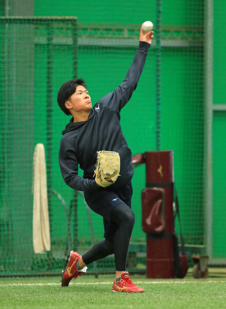 入寮から一夜明け、室内練習場で黙々と腕を振った。「5~6割の力でバランスを意識した」。最後のキャッチボールは昨年12月29日。初投げは仙台で行うと決めており、ボールを触ったのは9日ぶり。計83球。相手の同4位・内間(亜大)は「今年初めてと思えないぐらいボールがきていた。回転がきれいで球威もあって、正直びっくりしました」と目を丸くした。