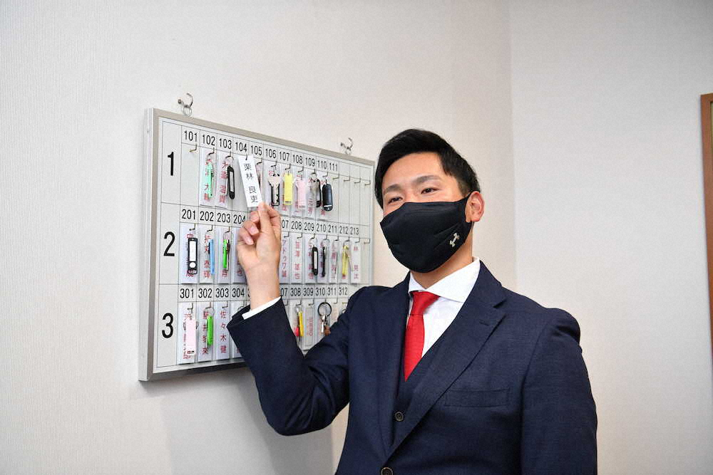 新型コロウイルスの感染拡大により、取材対応も「新様式」で行われた。入寮日恒例の部屋での写真撮影は禁止され、ドラフト1位・栗林良吏投手(24=トヨタ自動車)らは、自室の窓を開け報道陣のいる屋外に向かって手を振るなどした。