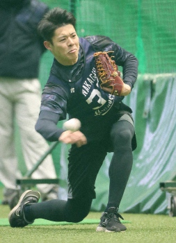 ≪来田「金属より楽しい」≫同ドラフト3位・来田(明石商)が阪神・高山モデルのバットに好感触を示した。「グリップを少し削っていますが、とても振りやすいです」。新人合同自主トレでは屋内でティー、トス打撃を行っている段階だが「木のバットは金属より楽しい」と適応力も高い。ヤクルト・村上モデルも用意しているものの、現状では85センチ、900グラムの高山モデルが一歩リード。それでも「いろいろなバットを試して、自分の形にしたいです」と、さらなる理想型を求めていく。