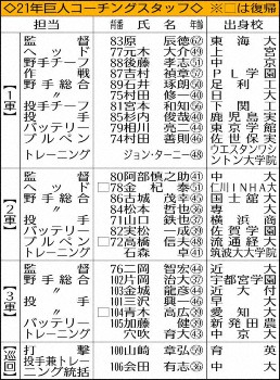ポスティングシステムを申請して大リーグ球団と交渉したエース菅野は残留が決まった。だが、近い将来を見据えれば、次代のエース育成はチームとして必須事項だ。昨季、菅野に次ぐ9勝を挙げた戸郷や力強い直球が武器の畠や桜井ら、潜在能力の高い投手は多い。変化球を巧みに操る左腕の田口には、試合中継後のモニター越しのインタビューで指導を行ったこともある。