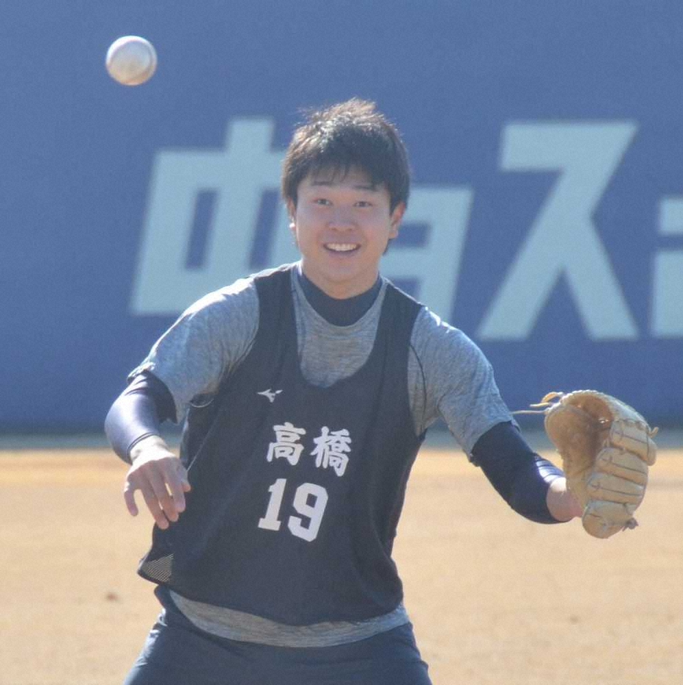 明るい表情で練習に取り組む高橋宏斗
