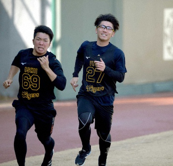 自主トレでは同3位・佐藤蓮(上武大)とキャッチボール。「力強いボールを投げていたので、すごかったです。いきいきとしたボールを投げていました」と年下からも刺激を受け、「阪神タイガースはいい投手が多いので、その中で勝ち抜いてローテーション入りをするというのが今の目標」と改めて誓った。 (須田 麻祐子)