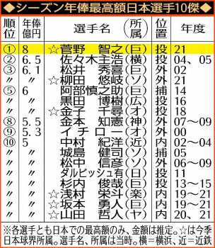 巨人・菅野は年俸8億円 メジャーの日本選手はダルが最高26億円 世界歴代最高・メッシは驚がくの…