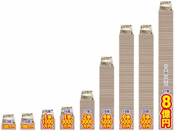 Jリーグではイニエスタ(神戸)の現年俸が最高の約32億円で、ほとんどのJ1クラブの人件費を上回る。欧州サッカーではメッシ(バルセロナ)が年俸9200万ドル(約95億6800万円)でスポーツ選手の歴代最高額とされる。ちなみに、1万円札を8億円分、重ねた場合は高さ8メートル、横に並べた場合は12.8キロに達する。