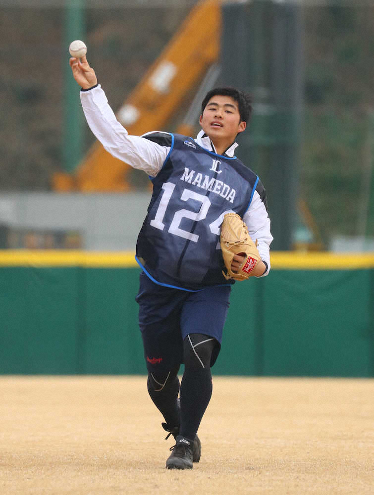 西武育成ドラフト4位の豆田(浦和実)が18歳の誕生日を迎えた。「親からは“これからも頑張れ”と。友達からも“早く1軍に上がれるように頑張って”というメッセージが多かったです」と笑顔。