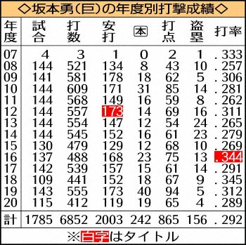 昨季、右打者としては最年少となる31歳10カ月の若さで通算2000安打を達成。ただ、坂本勇には通過点にすぎず、今季は3000安打への再スタートを切る。「打ちまくりたい。そのために強い体をつくりたいと思う」。延期された東京五輪での金メダル獲得も悲願。悪化の一途をたどるコロナ禍の中で開催を願い「僕の野球人生の中で新しくできた目標の一つ。そのためにもムチを入れて頑張っている」と言った。