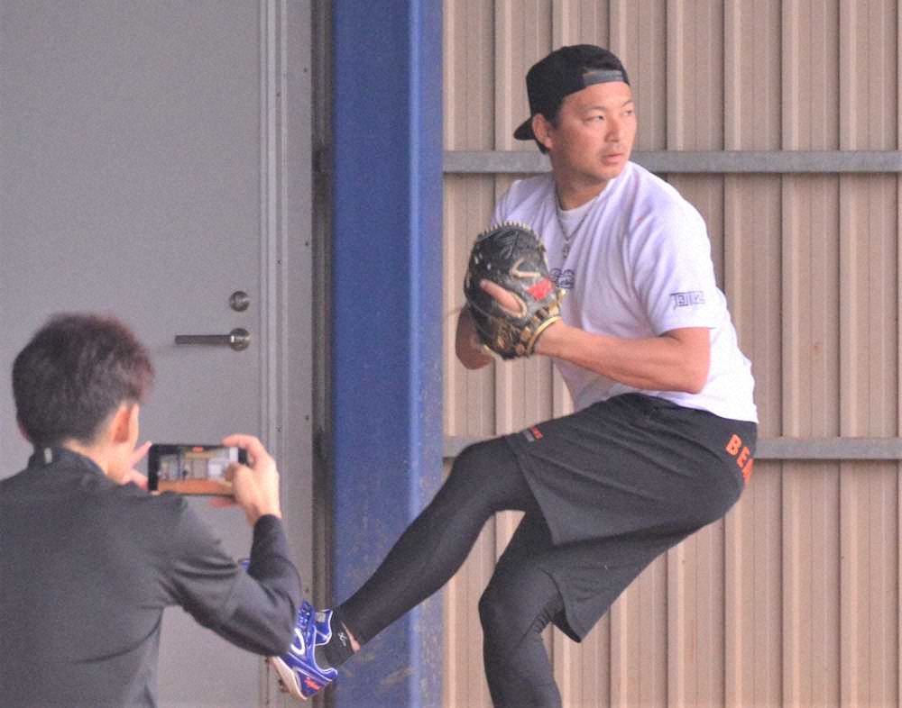 自主トレを行っている沖縄・北谷では捕手にベースより少し手前に座ってもらい、18メートル44の距離よりも短いもののブルペンで投球練習を実施。「怖さはまったくない。傾斜を使うと体重が乗って腕が振れ過ぎてしまう」とオーバーペースにならないよう注意を払っている。