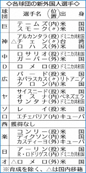 昨年末に外国人の新規入国が停止され、7日に政府が緊急事態宣言を発令。特に影響を受けたのが新外国人でビザの更新が必要な2年目以降の選手も同様だ。発給手続き再開は宣言が解除される2月7日以降で数日を要する。2週間の隔離期間も含めチーム合流は早くて2月下旬。キャンプ参加は難しく開幕に間に合うかも微妙だ。