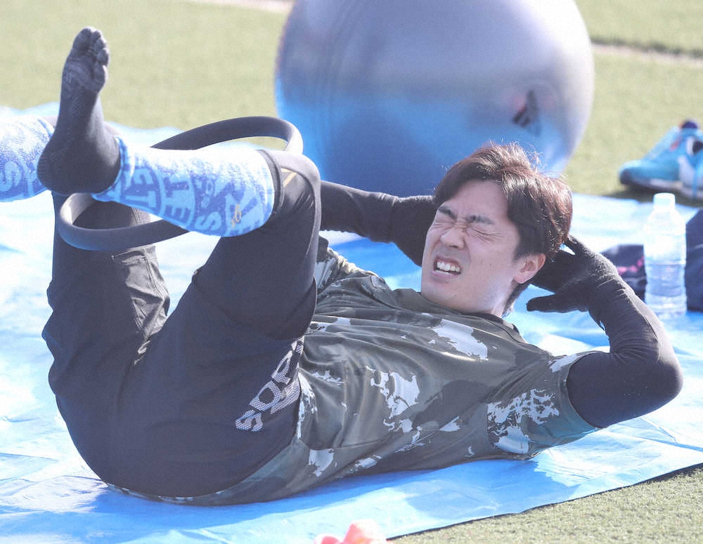 練習開始の朝8時50分。体幹トレーニングで使用するシートを地面に敷く前にスタンドにいる報道陣に声をかけた。「この辺が写真、撮りやすいですか?希望の位置があったら言ってくださいね」。新型コロナウイルス感染防止のため、グラウンドに入れないカメラマンを気遣っての行動だった。