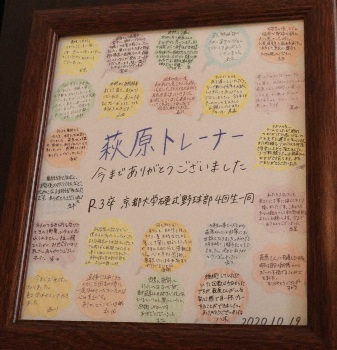 右肘に不安を抱え、リーグ戦未勝利だった3年の原健登が、ボールの握り方など萩原のアドバイスを受け、素質を開花させた。近大戦で3安打完封勝利すると、関学大、同大戦でも完投勝利を挙げた。「近大戦では佐藤輝明から三振を取った。気持ち良かったね。1年後に阪神のドラフト1位なんだから」。トレーナーとしての手応えを、選手が与えてくれた。
