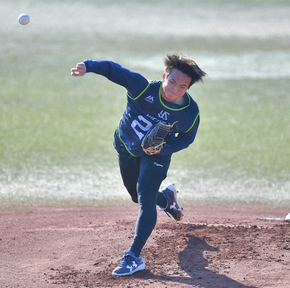 「トラックマンで測っていただけるということだったので」と、新人合同自主トレで初めて球場マウンドから投球練習。22球を投げた最速155キロの即戦力右腕は、潜在能力の高さをうかがわせた。