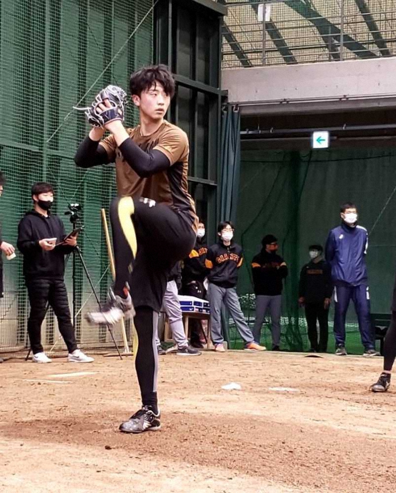 昨年10月に椎間板ヘルニアの手術を受け、今季は育成契約となった巨人・直江大輔投手(20)が24日、川崎市のジャイアンツ球場でブルペン投球を行った。